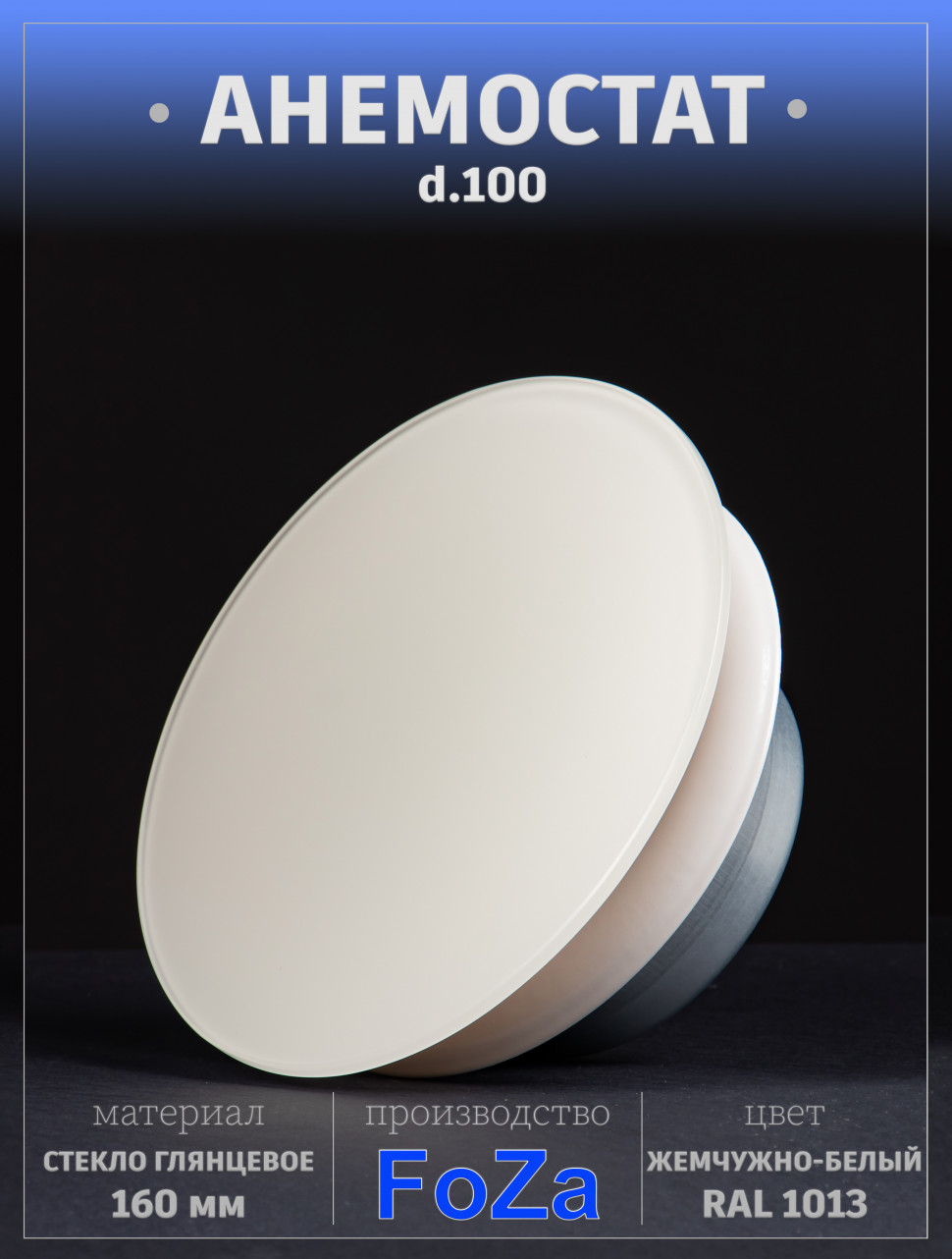 Анемостат со стеклянной внешней частью FOZA D 100 мм. RAL 1013. Круглый в интернет-магазине «ВЕНТФОМ». Заказать с доставкой! Тел.: +7 (925) 201-33-89.