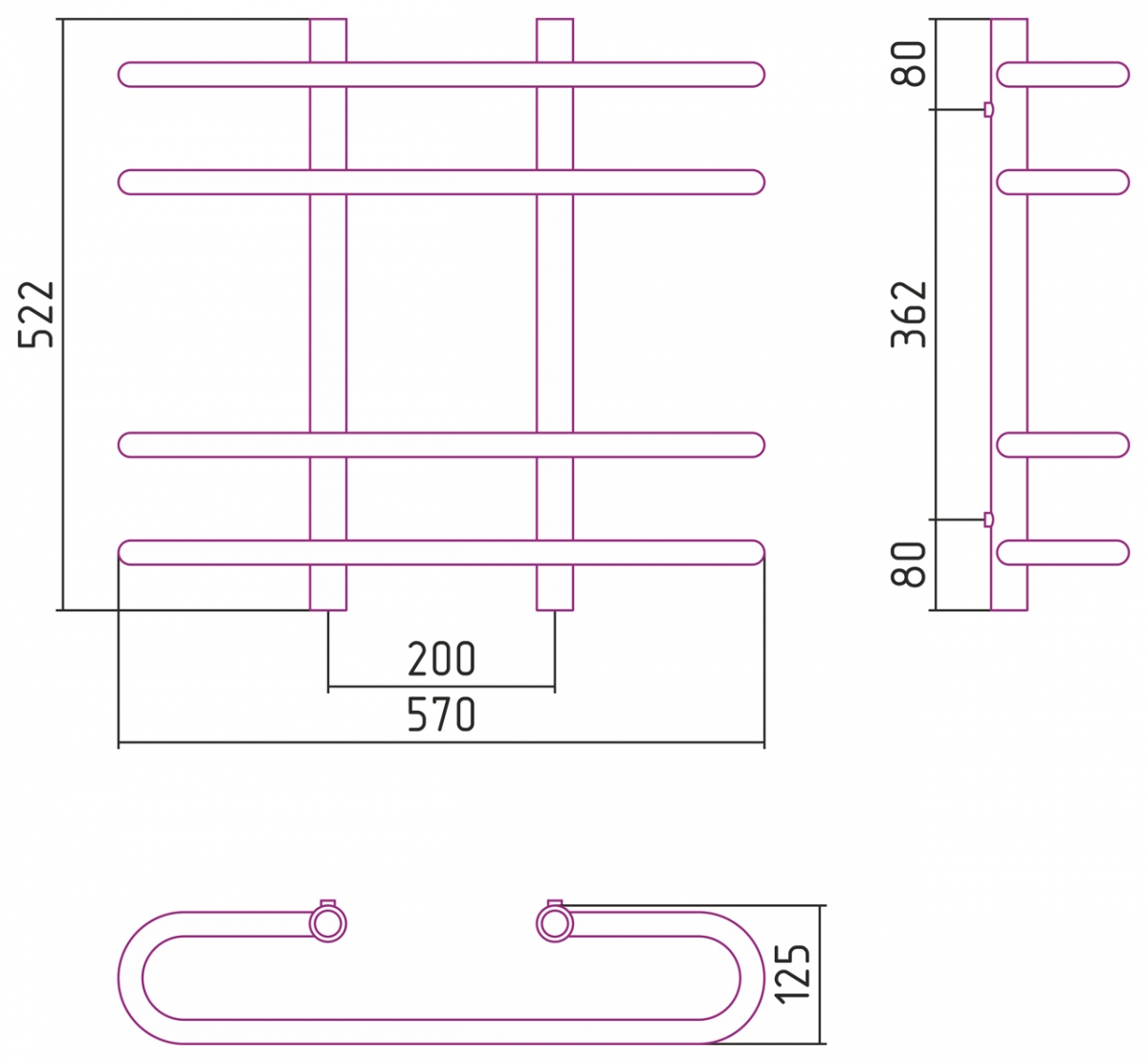 Полотенцесушитель комбинированный Сунержа Фурор-ПРОФИ 600x600. 00-5106-6060